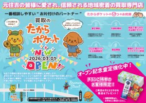 たからポケット 元住吉店は2026年3月オープンの買取専門店です!